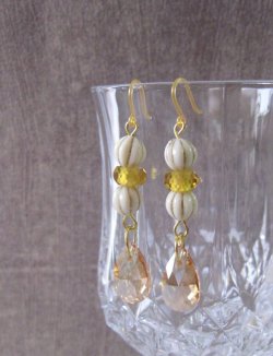 | 杏色のドロップチャームとビーズが優しく輝く樹脂フックピアス | |