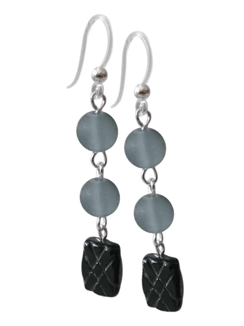 | チェコビーズ&すりガラスの樹脂フックピアス 3色 | |