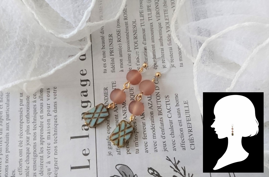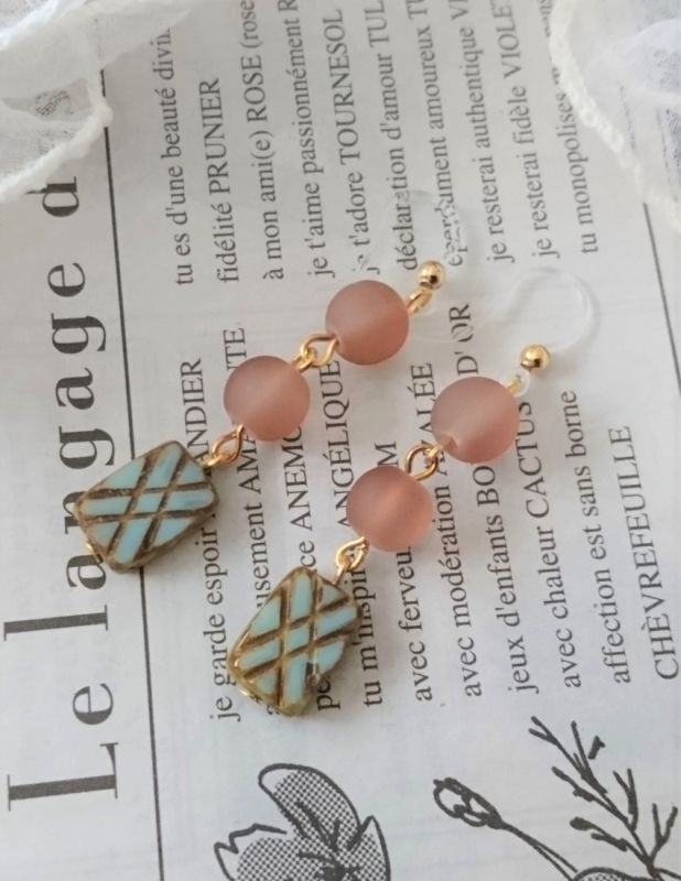 | 素材 | チェコビーズ、すりガラスビーズ、合金、 ピアスフック(樹脂) |