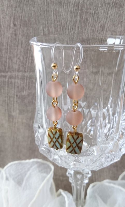 アクセサリー ジュエリー ピアス イヤリング チェコビーズ 摺りガラス スリガラス