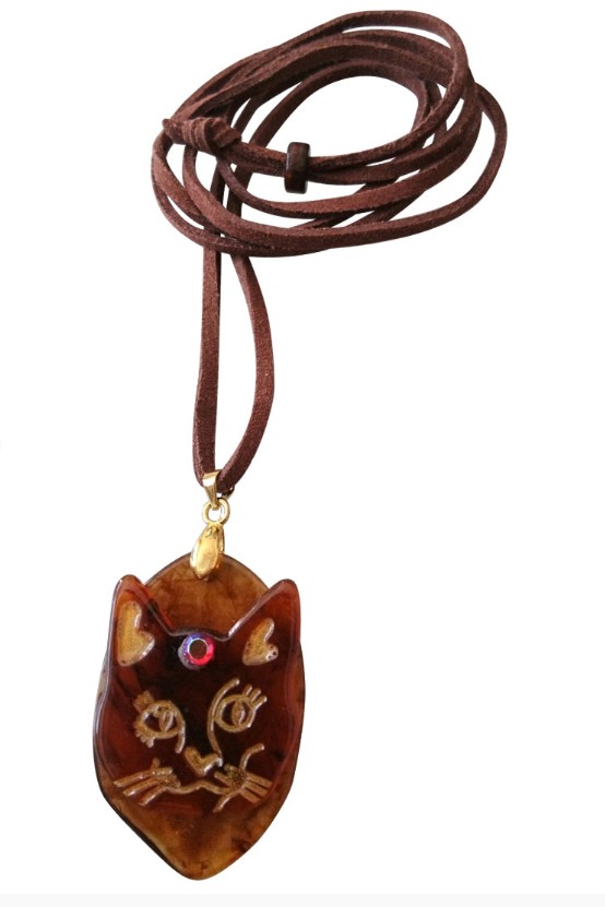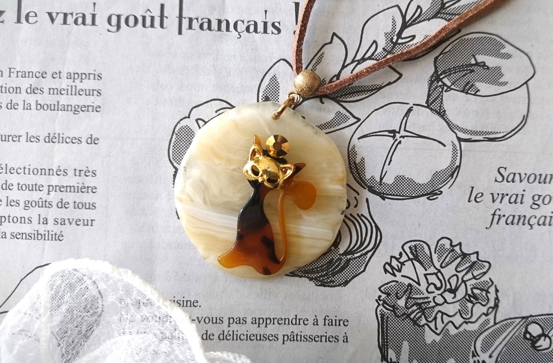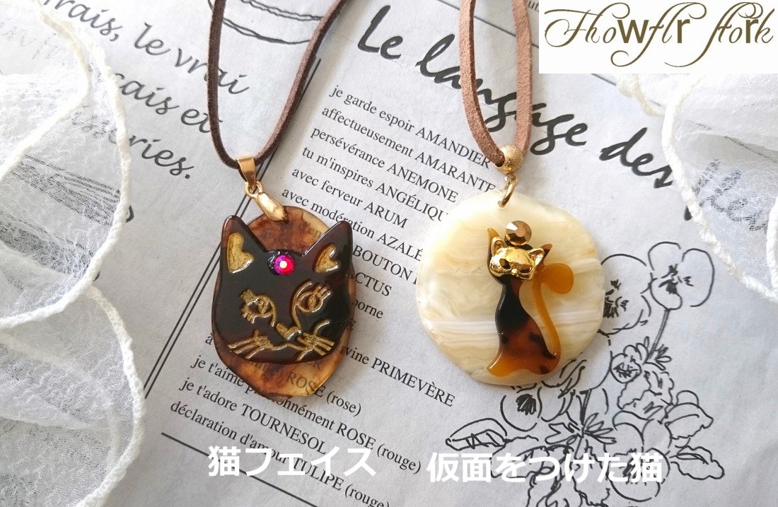 【送料無料】【レザーネックレス】◆flower storm◆ 仮面をつけた猫&猫フェイス 革紐ロングネックレス べっ甲調 2種( アクセサリー ねこ キャット 日本製) [1362799506]