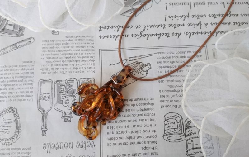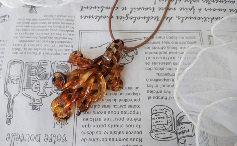 琥珀ブラウンカラー シャンデリアネックレス