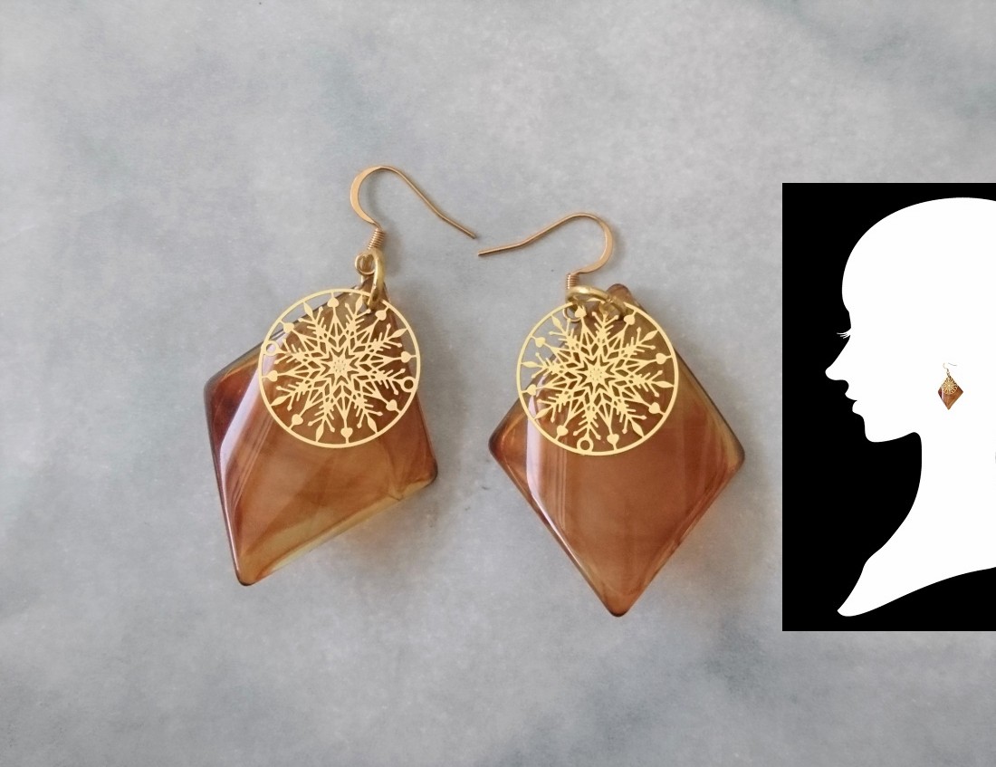 【送料無料】【sus316 フックピアス】◆flower storm◆ひし形アクリル&繊細な雪の結晶 メタルチャーム サージカルステンレス K18金メッキ加工(アクセサリー スノーフレーク ニッケルフリー 日本製) [1362799534]