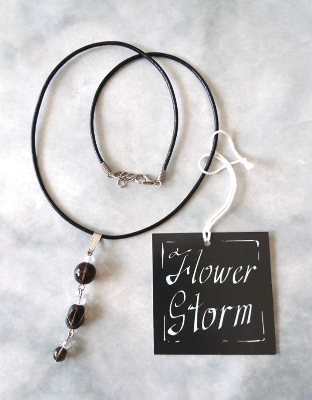 【送料無料】【レザーネックレス】◆flower storm◆天然石スモーキークォーツ三連 &本水晶 本革ネックレス (アクセサリー パワーストーン 煙水晶 天然クリスタル 革紐ペンダント 日本製) [1368799569]