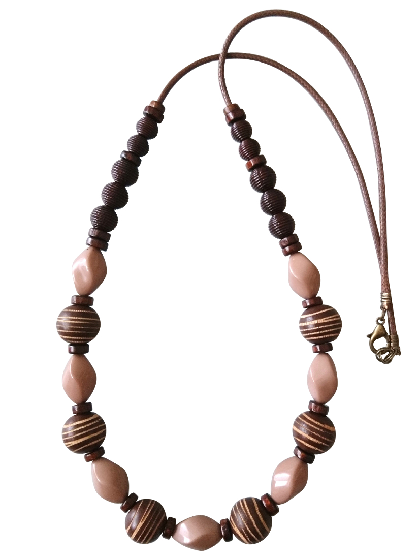 アクセサリー ネックレス ロング 縞模様 横縞 ダークブラウン ライトブラウン ウッド 日本製