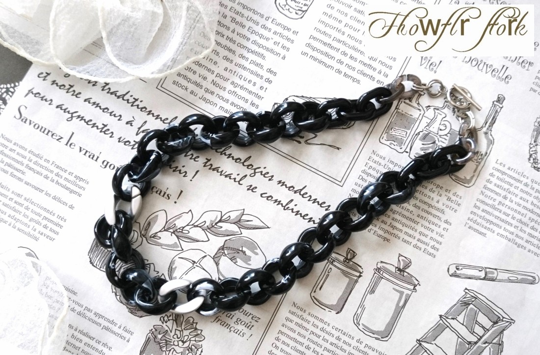 【送料無料】◆flower storm◆長さ約44cm アクリルチェーン ショートネックレス Black×Silver (アクセサリー ボリューム レディース 日本製) [1368799654]