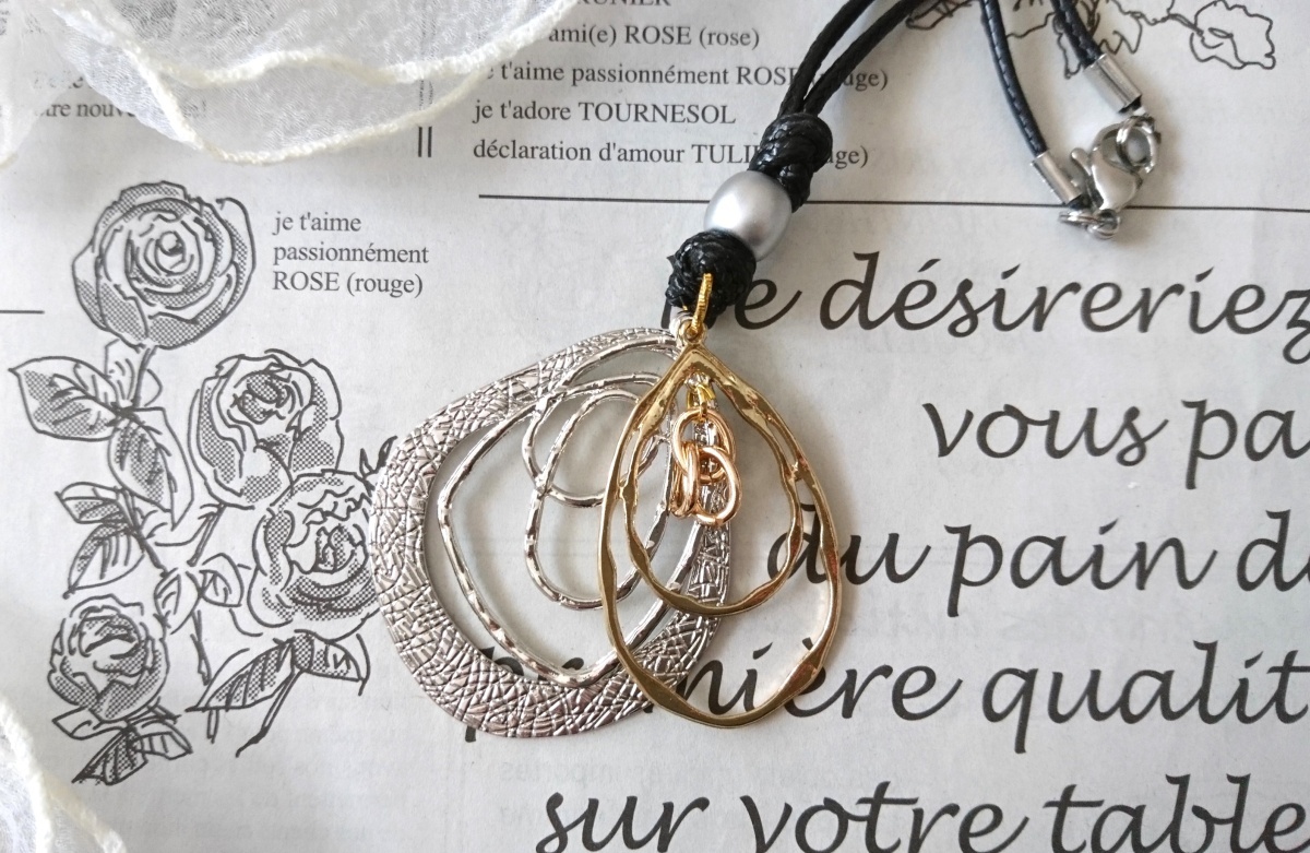 クールなシルバーに、揺れるリングチャーム付ゴールドを重ねて、