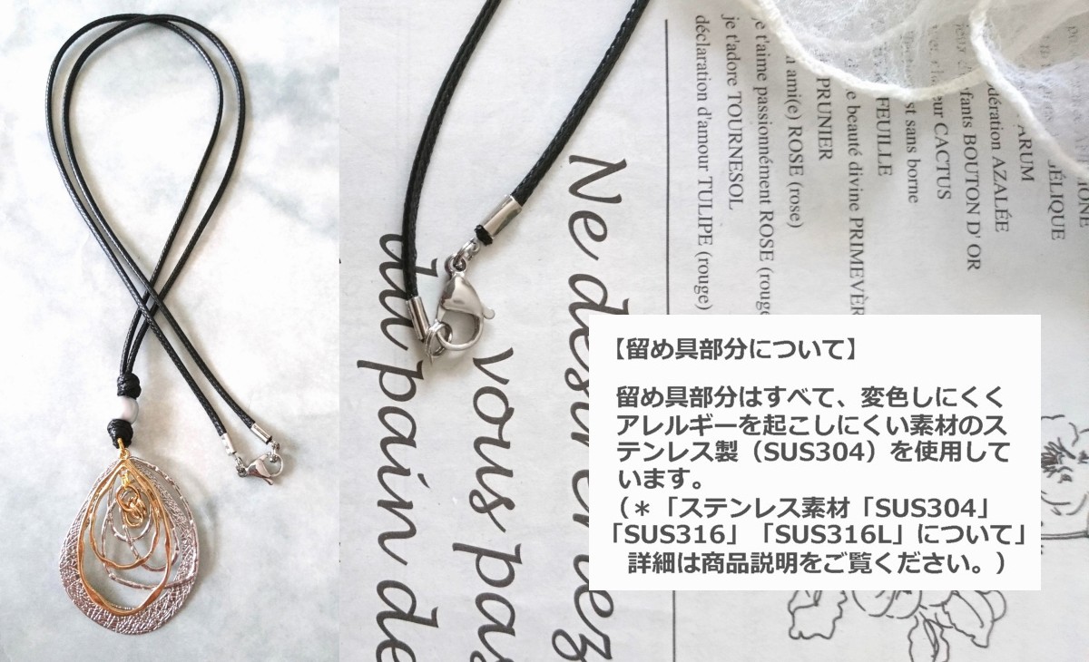留め具部分はすべて、変色しにくくアレルギーを起こしにくい素材の
