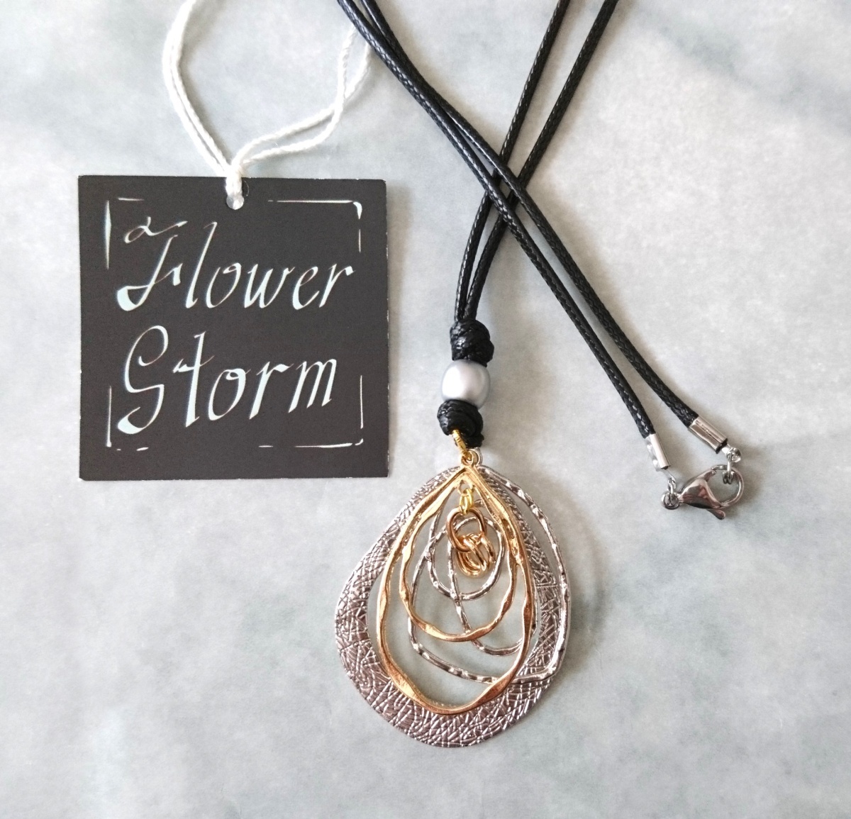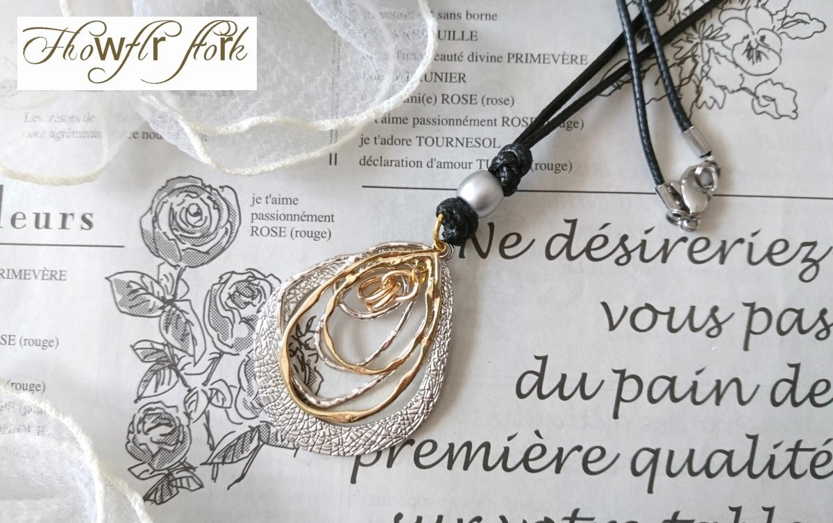 【送料無料】◆flower storm◆長さ約74cm シルバー×ゴールド コンビネーションカラーのメタルフレームチャーム ロングネックレス (アクセサリー ステンレス 日本製 ) [1368799657]