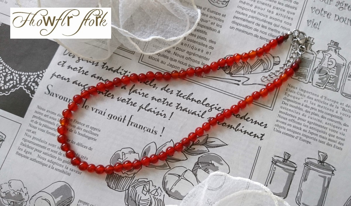 【送料無料】◆flower storm◆長さ42~46cm 天然石 カーネリアン6mm ネックレス アジャスター付 (7月誕生石 赤メノウ ステンレス アクセサリー 日本製 メンズ レディース) [1368799659]