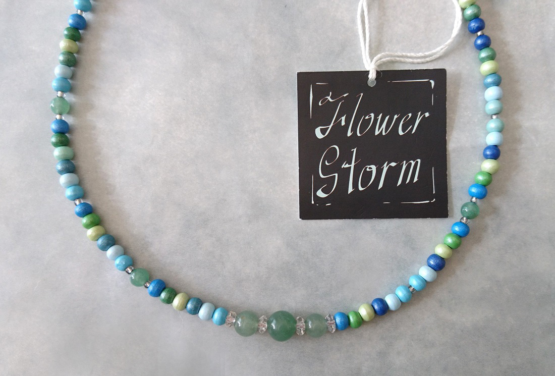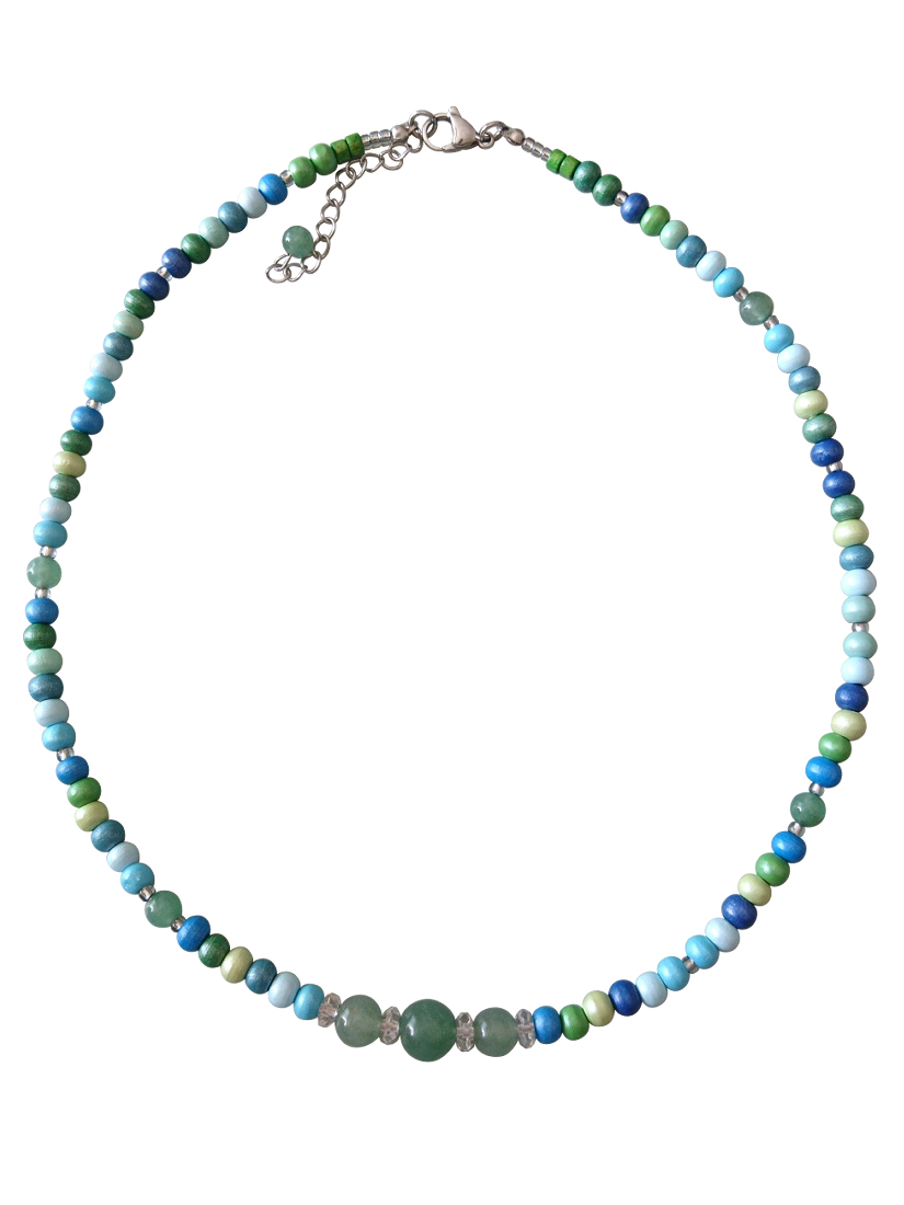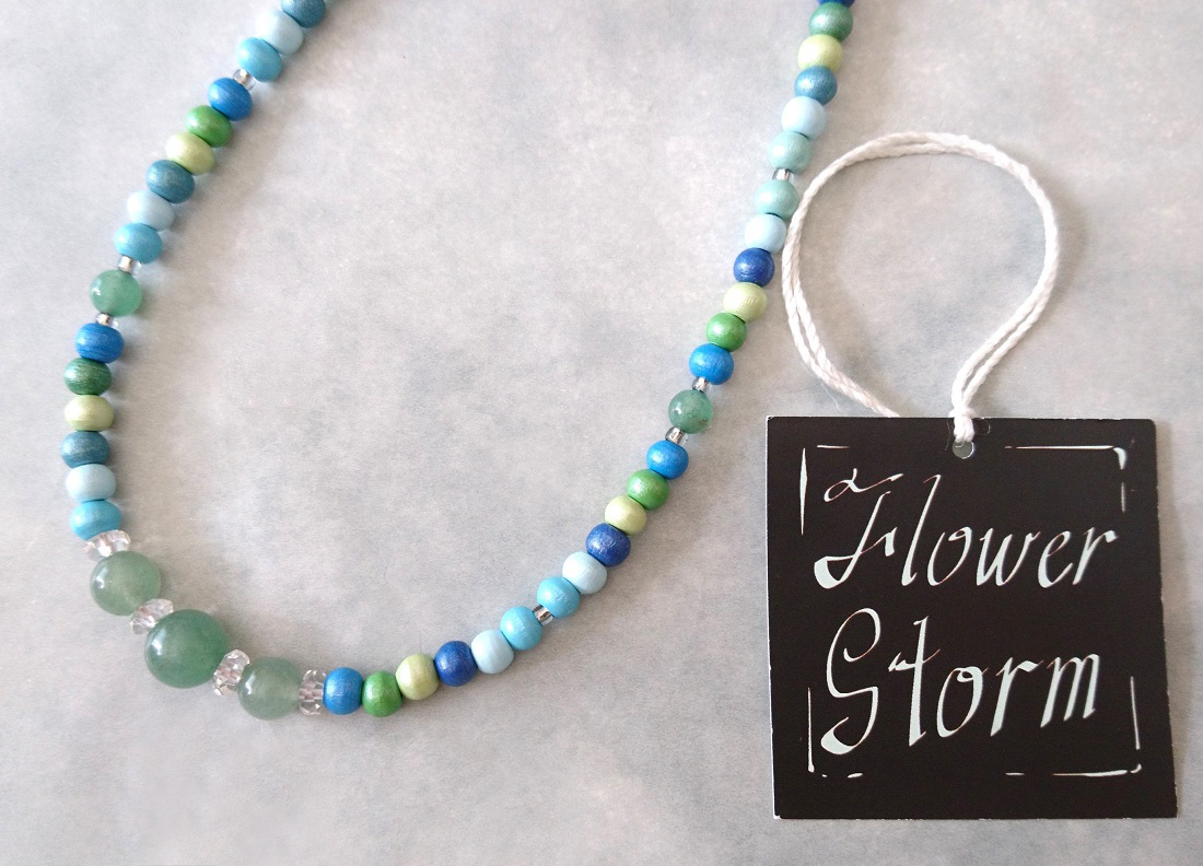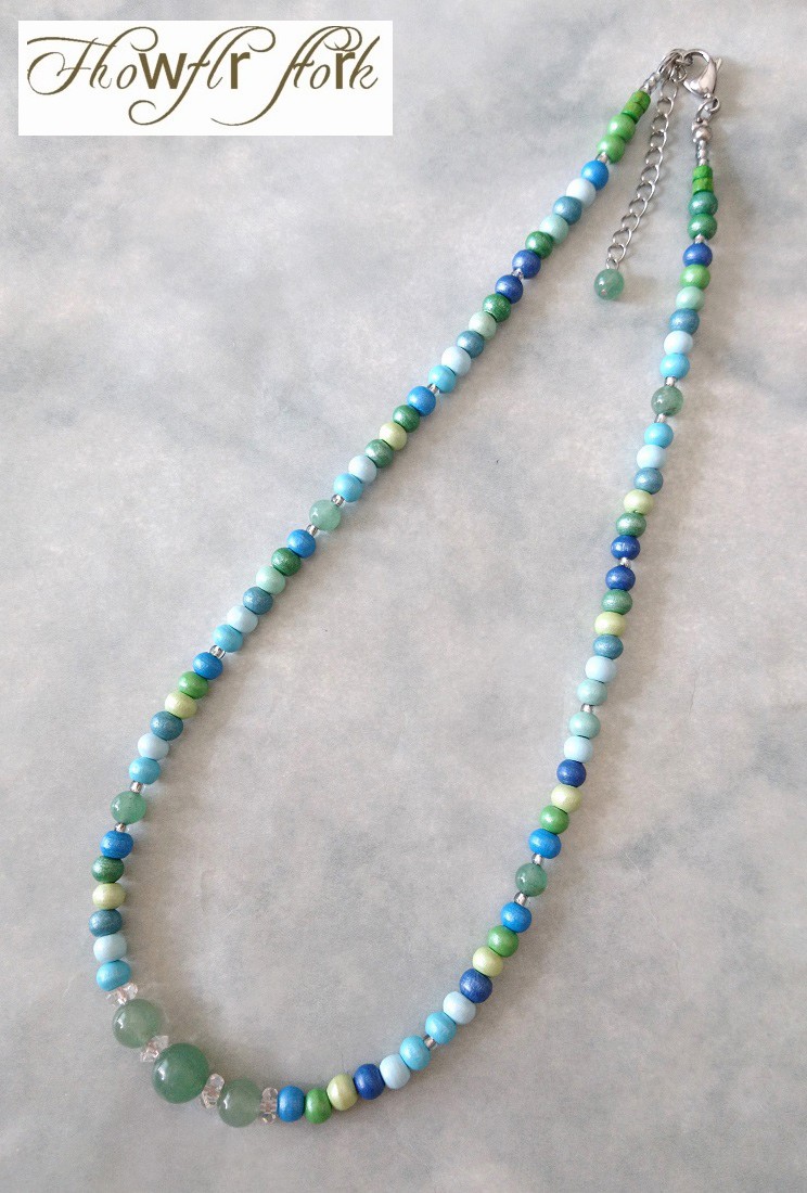 【送料無料】◆flower storm◆長さ52~57cm 天然石グリーンアベンチュリン、水晶&ウッドビーズのネックレス マルチカラーグリーン系 アジャスター付 ( パワーストーン 天然木 TOHOビーズ ステンレス アクセサリー 日本製 メンズ レディース) [1368799663]