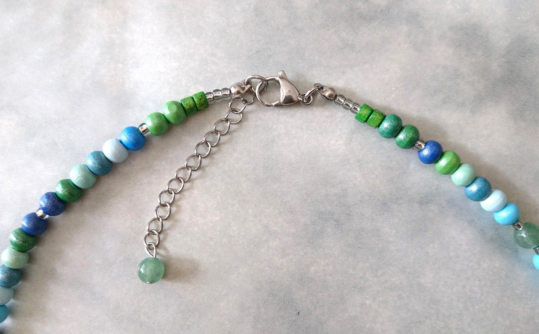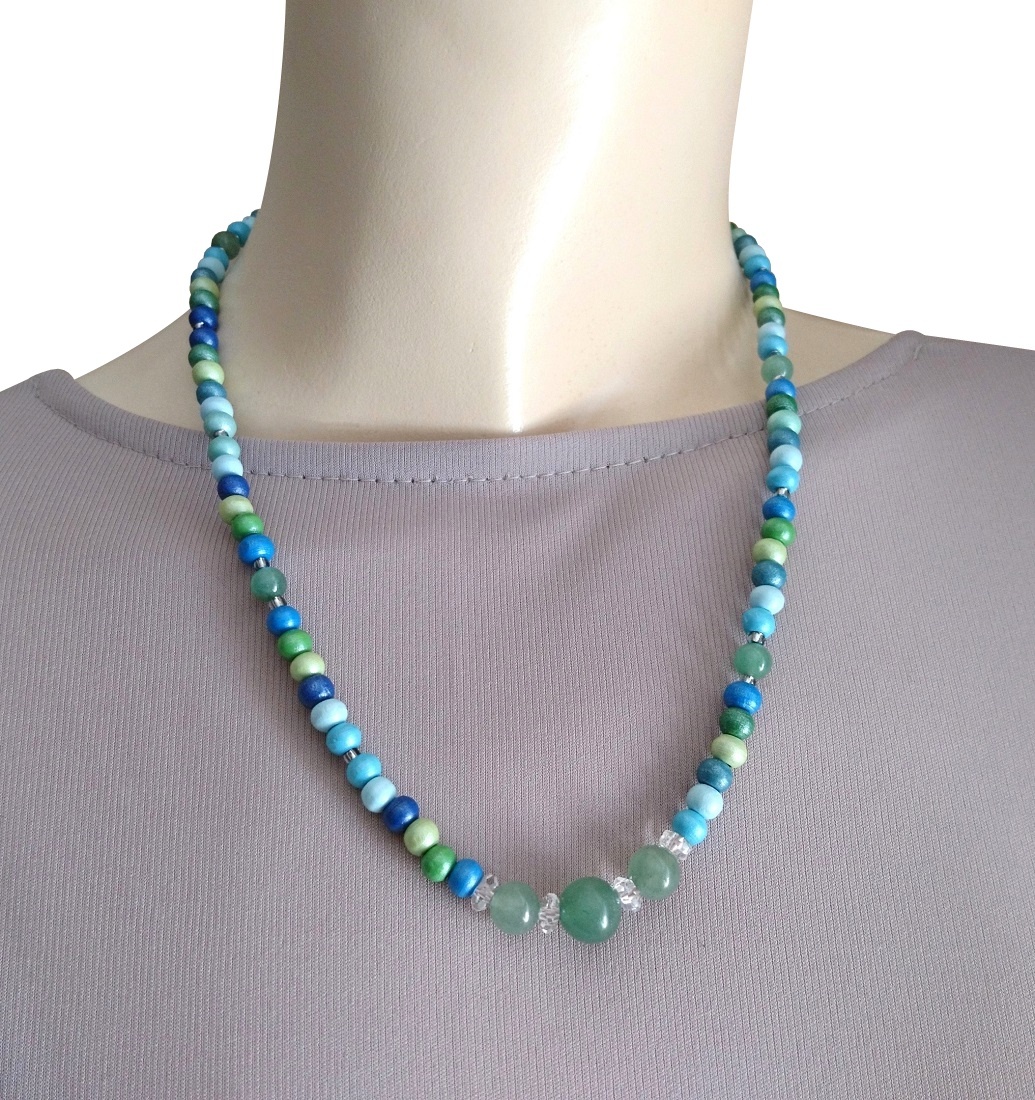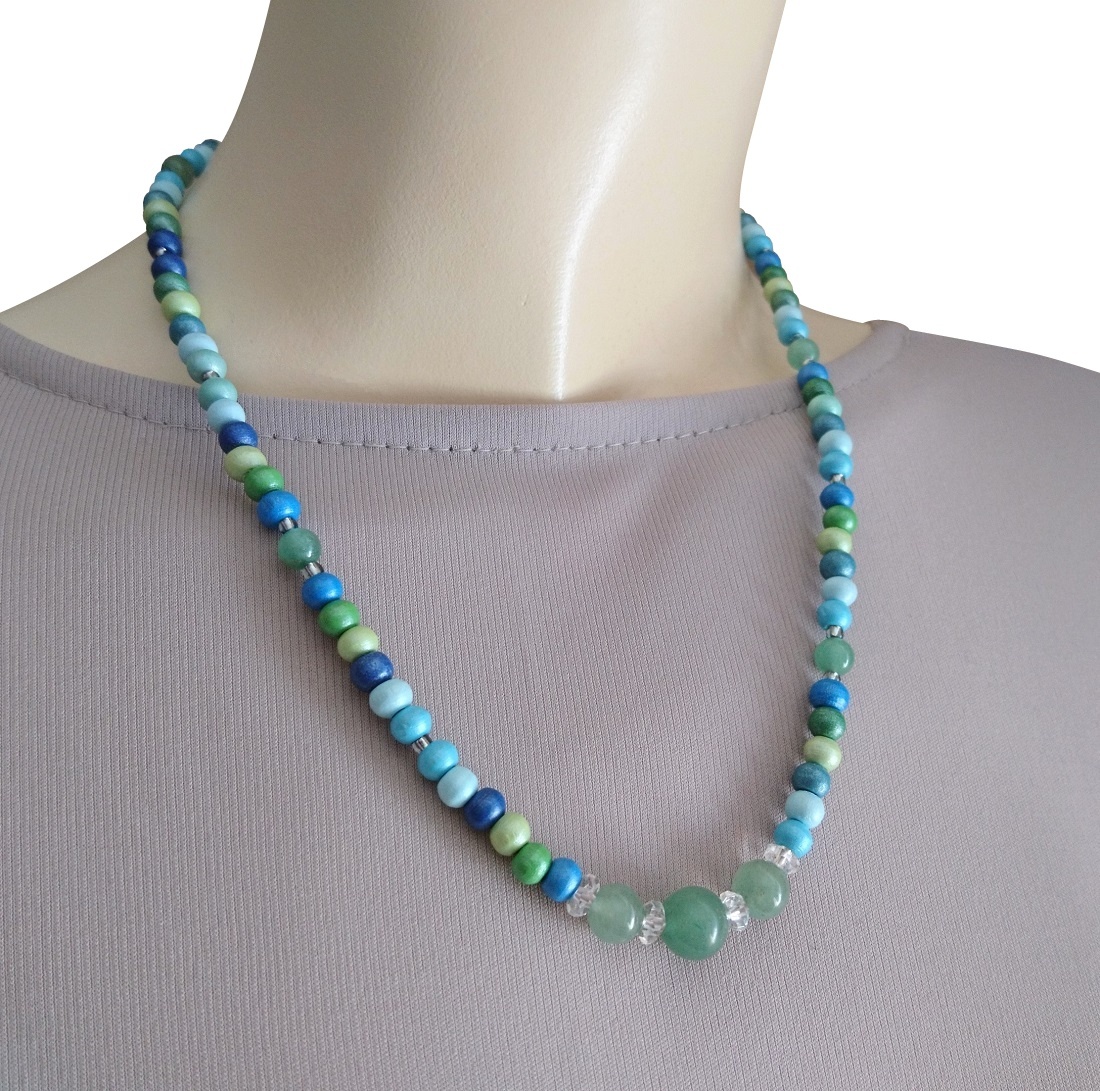 【送料無料】◆flower storm◆長さ52~57cm 天然石グリーンアベンチュリン、水晶&ウッドビーズのネックレス マルチカラーグリーン系 アジャスター付 ( パワーストーン 天然木 TOHOビーズ ステンレス アクセサリー 日本製 メンズ レディース) [1368799663]