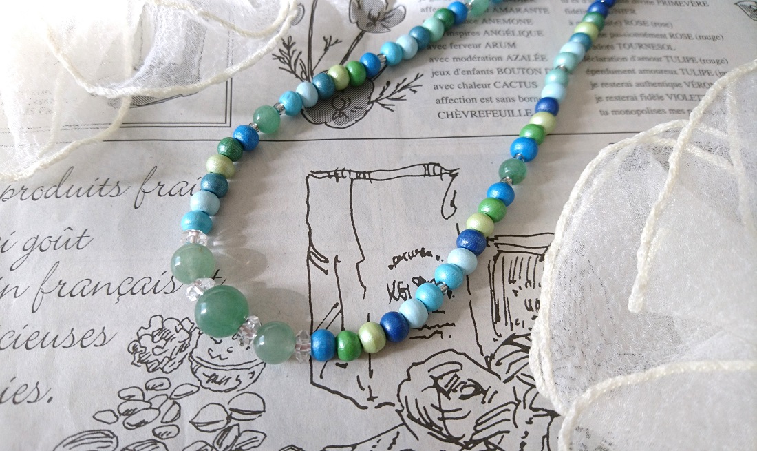 微光沢のある可愛いウッドビーズを組み合わせたネックレス。