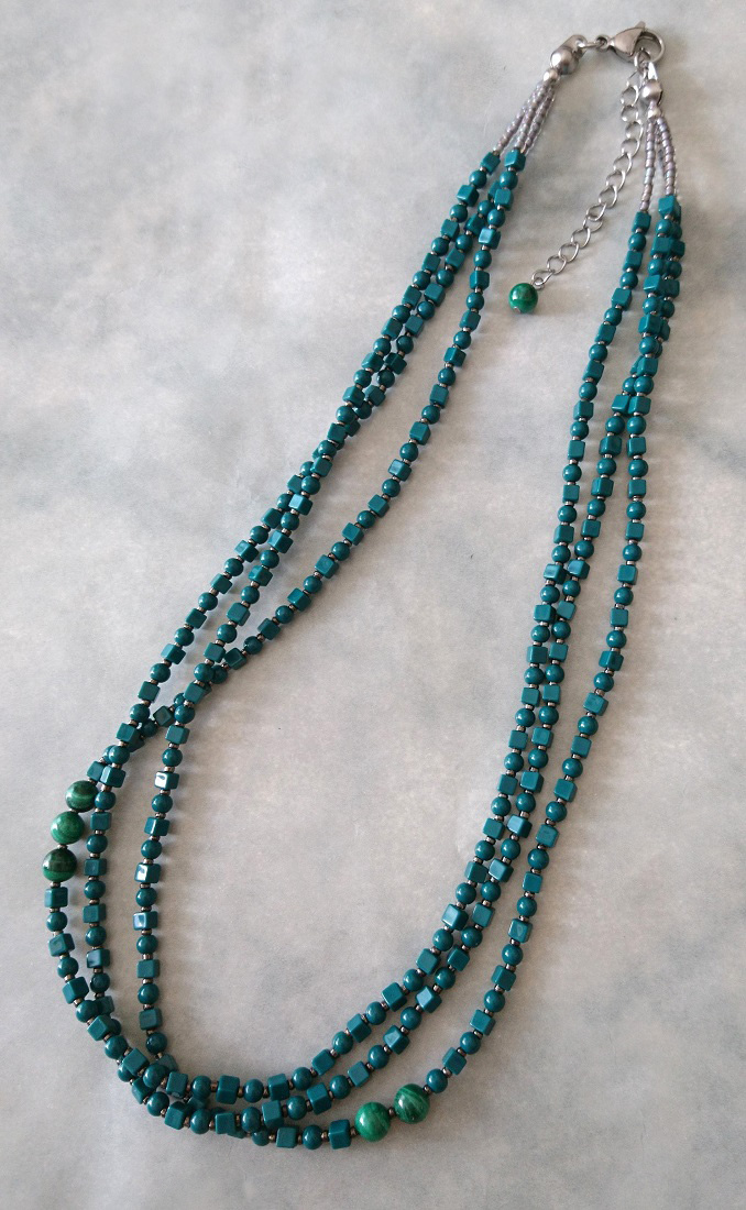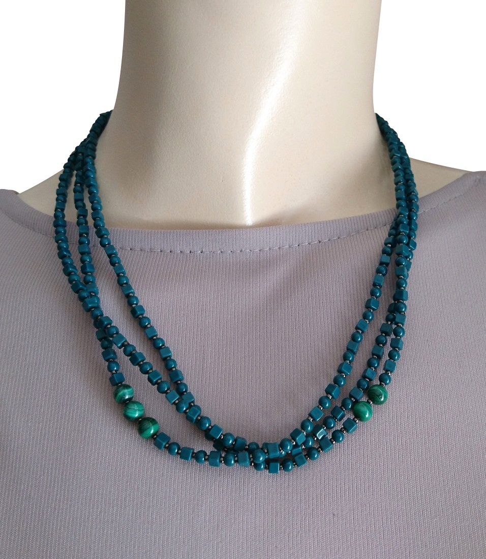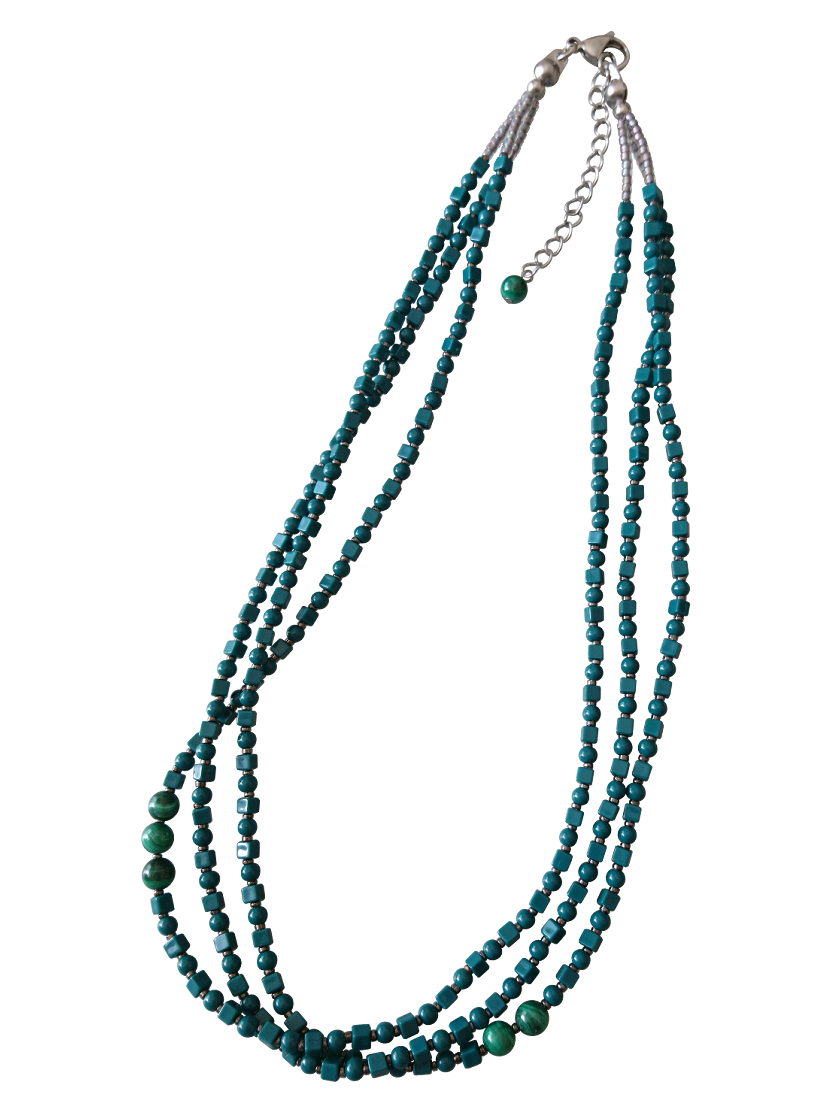 ティールカラービーズの3連ネックレス☆☆