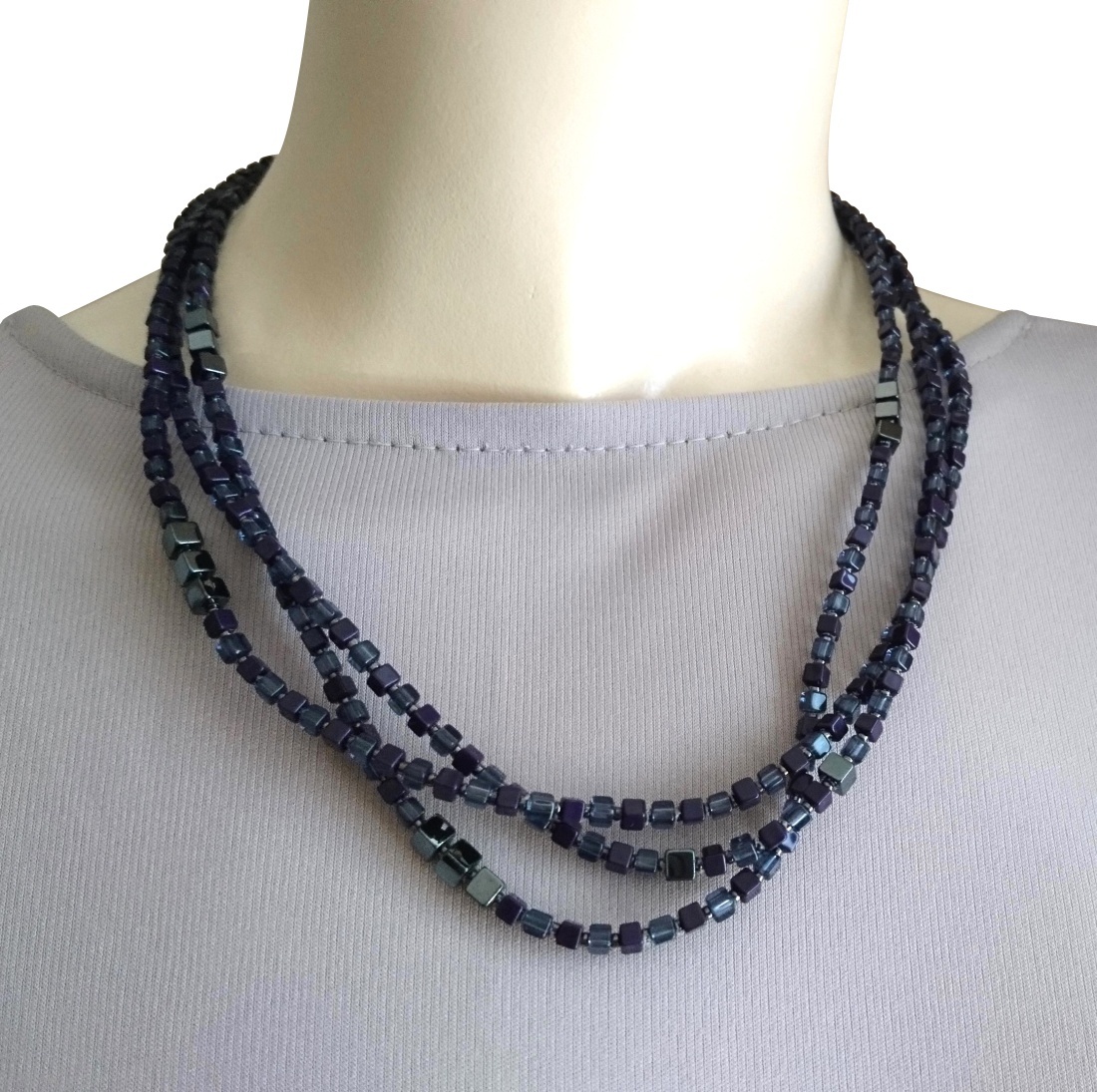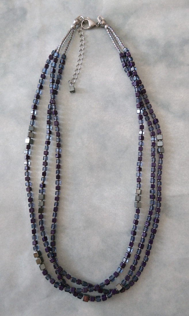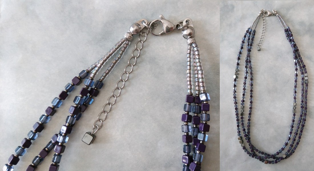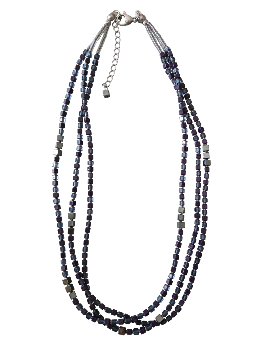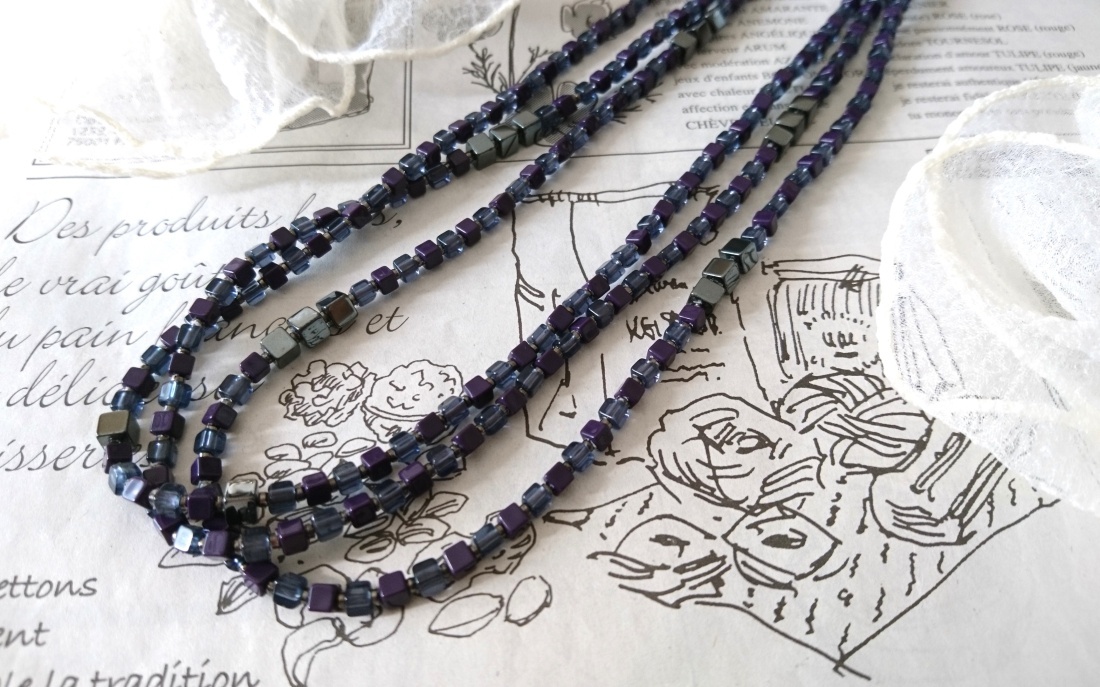 3種の異素材ビーズを組み合わせた3連ネックレスです。