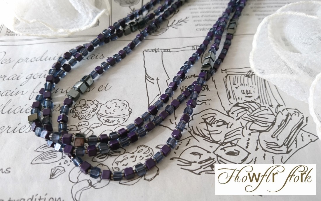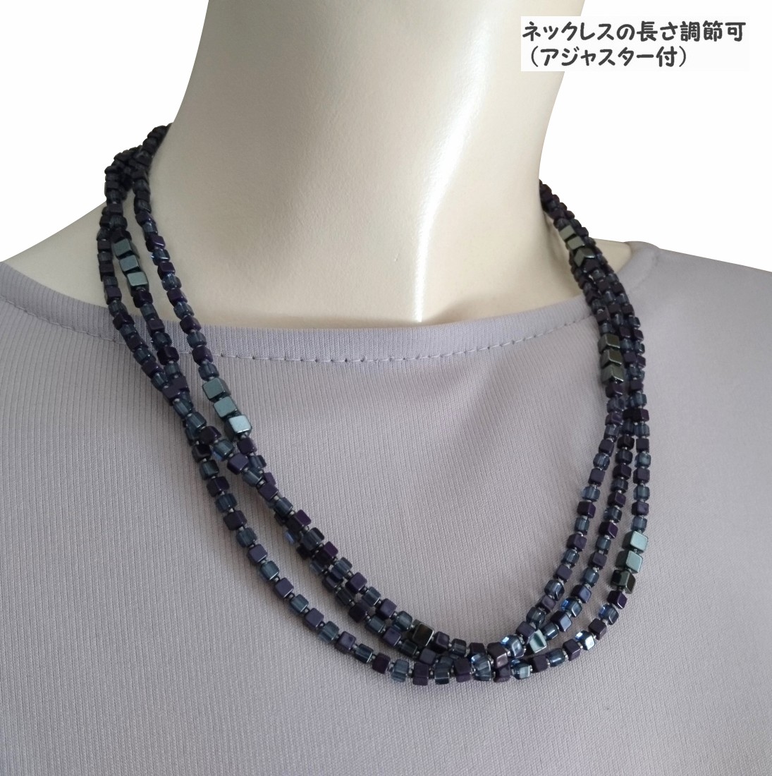 【送料無料】◆flower storm◆長さ51~56cm 天然石ヘマタイトと3種のビーズの3連ネックレス アジャスター付 ( パワーストーン 赤鉄鉱 アクリル TOHO 真鍮 ステンレス アクセサリー 日本製 ) [1368799669]