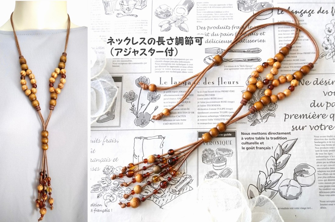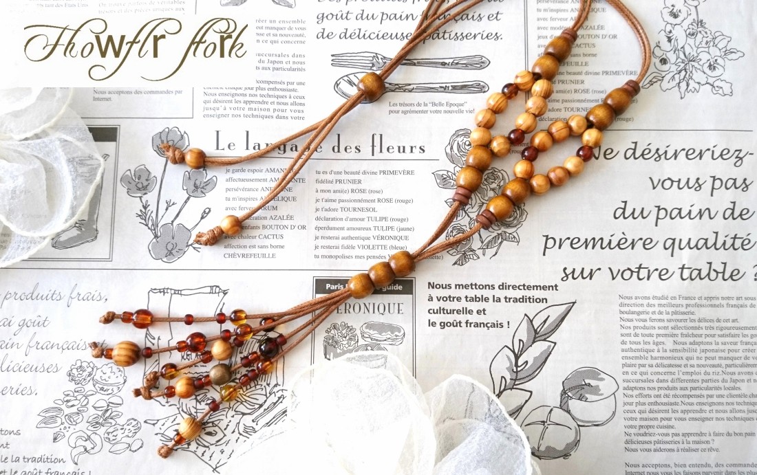 【送料無料】◆flower storm◆ウッドのぬくもりとナチュラル感で魅せる♪異素材ビーズ使いロングネックレス アジャスター付(アクセサリー 天然木 TOHO 日本製) [1368799673]