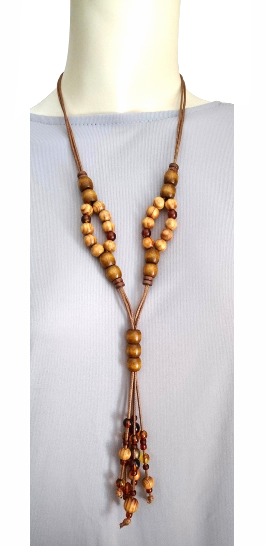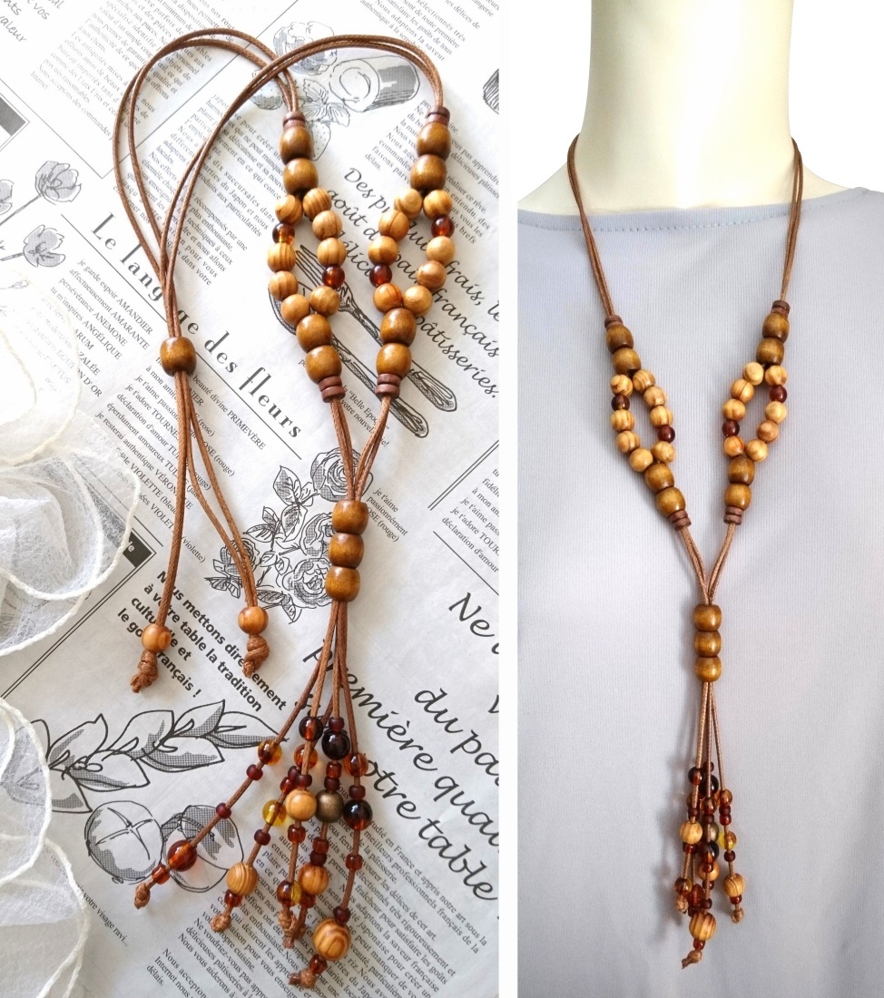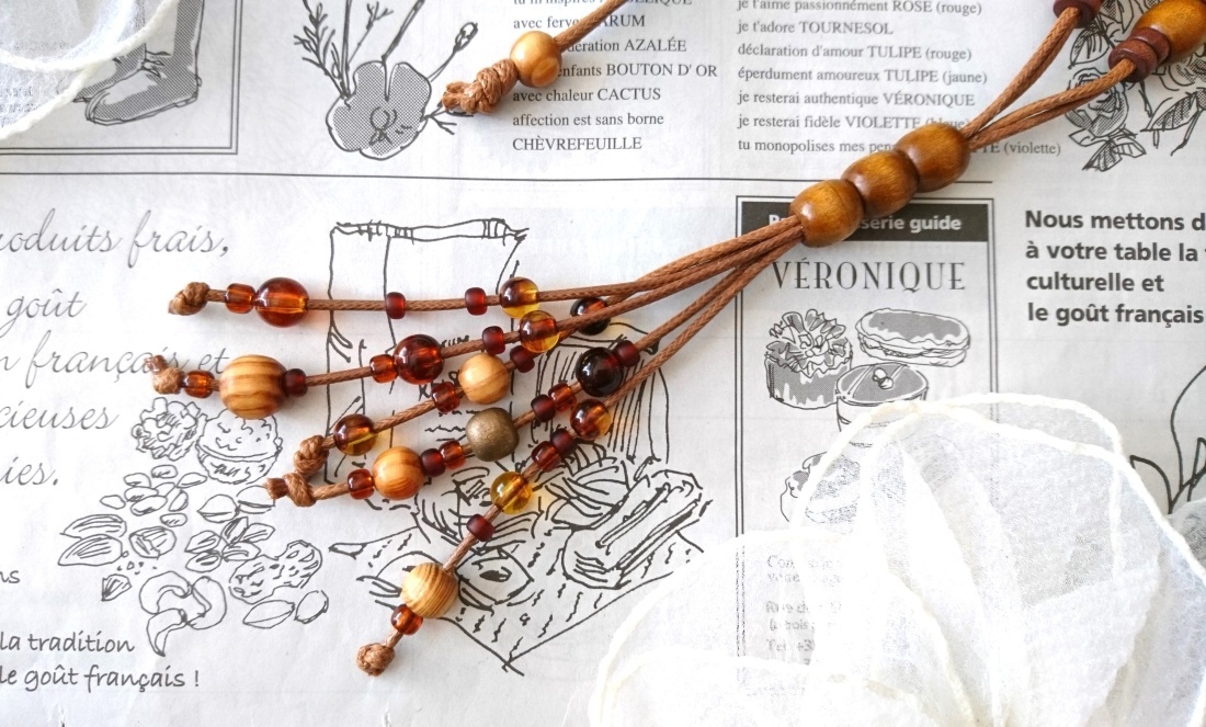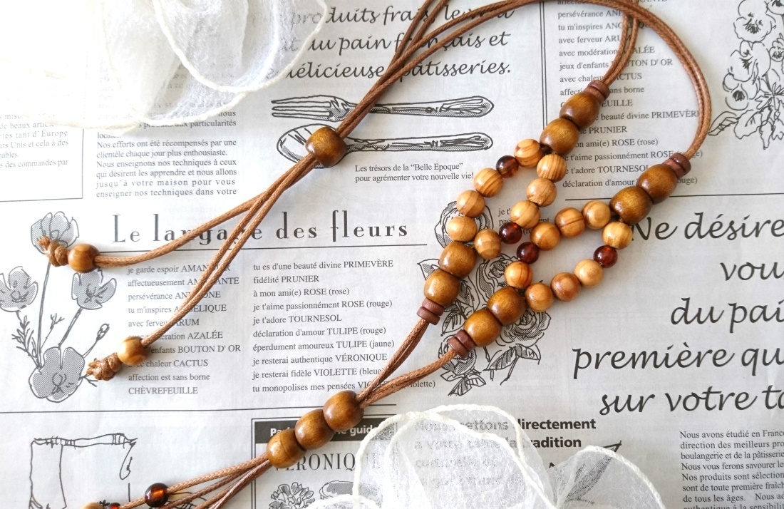 木目の美しさを活かした優しい雰囲気の革紐ネックレスです。