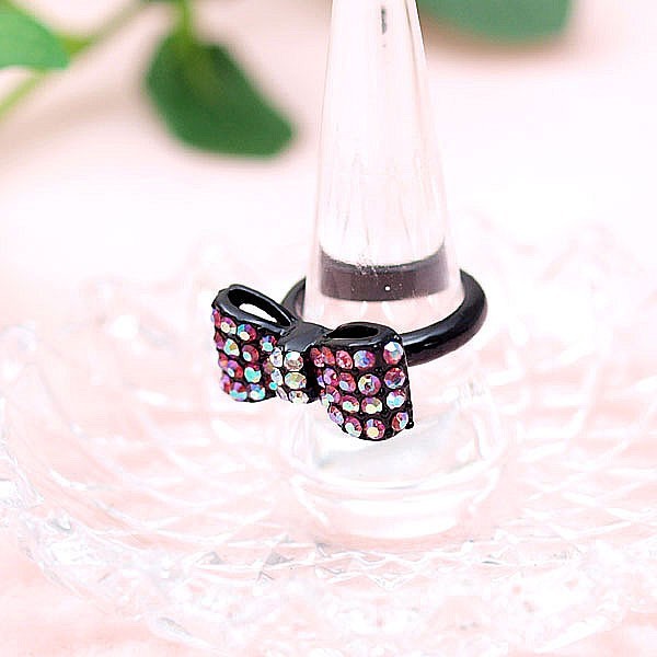 ≪VIVACE≫大人気! ブラックぷっくりパヴェリボンリング! スワロフスキークリスタル使用! クールなリング♪ [560555A]