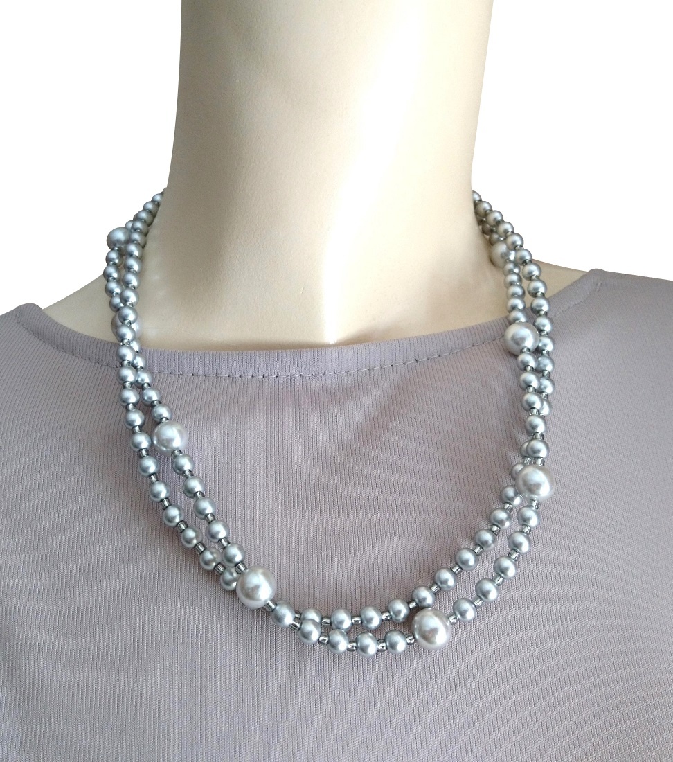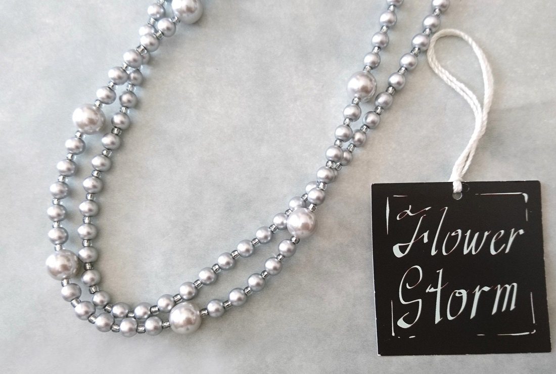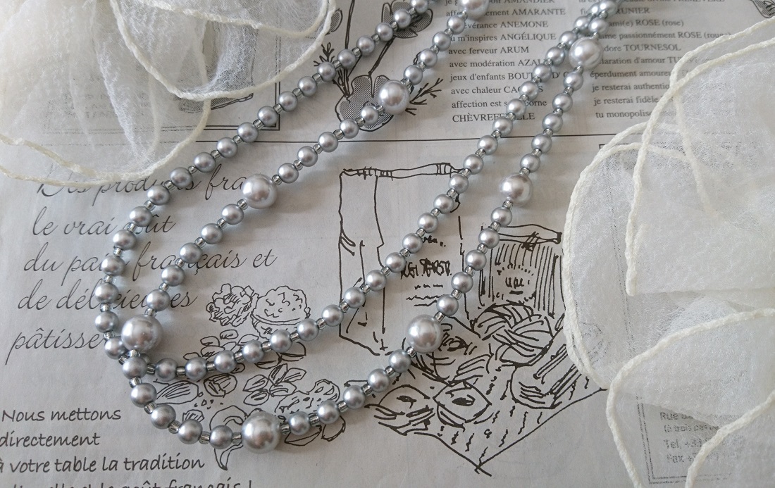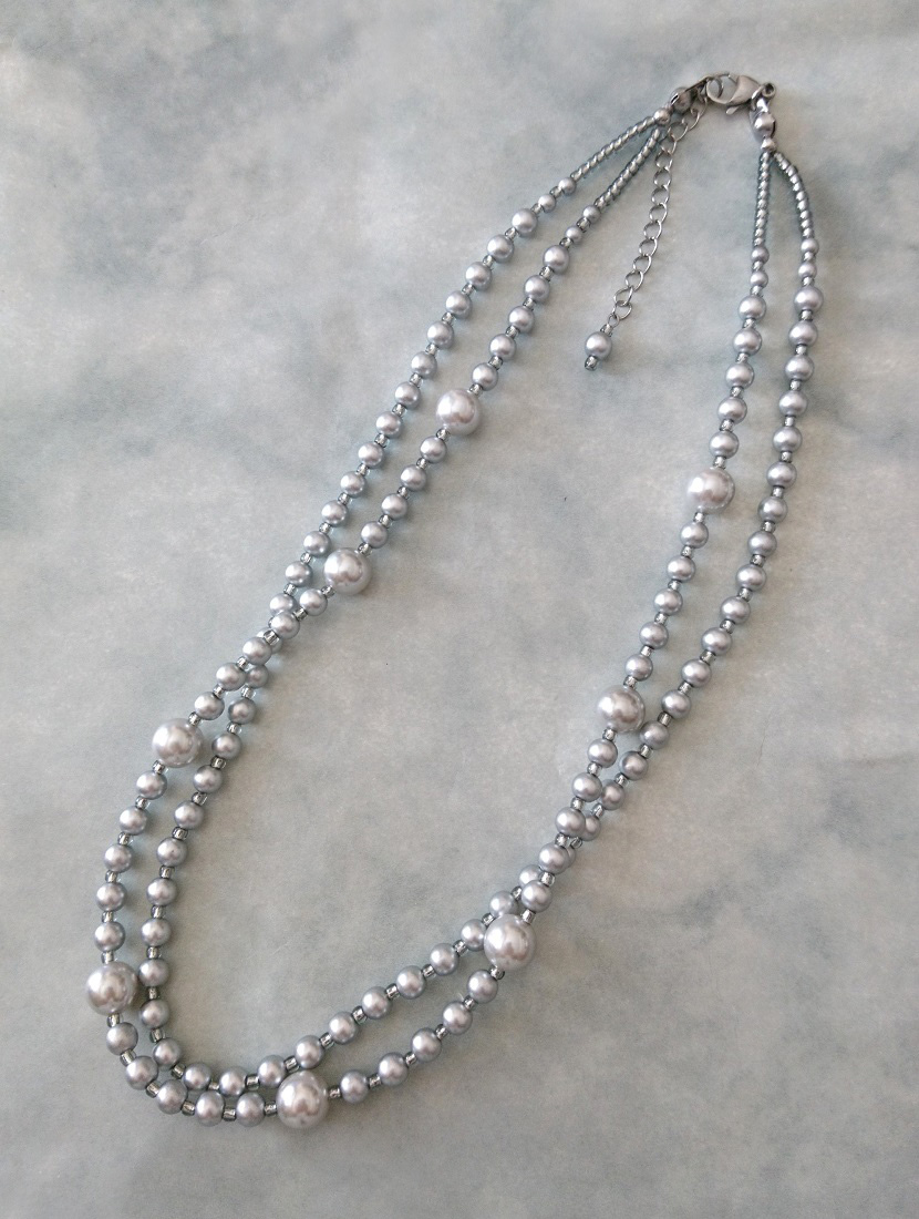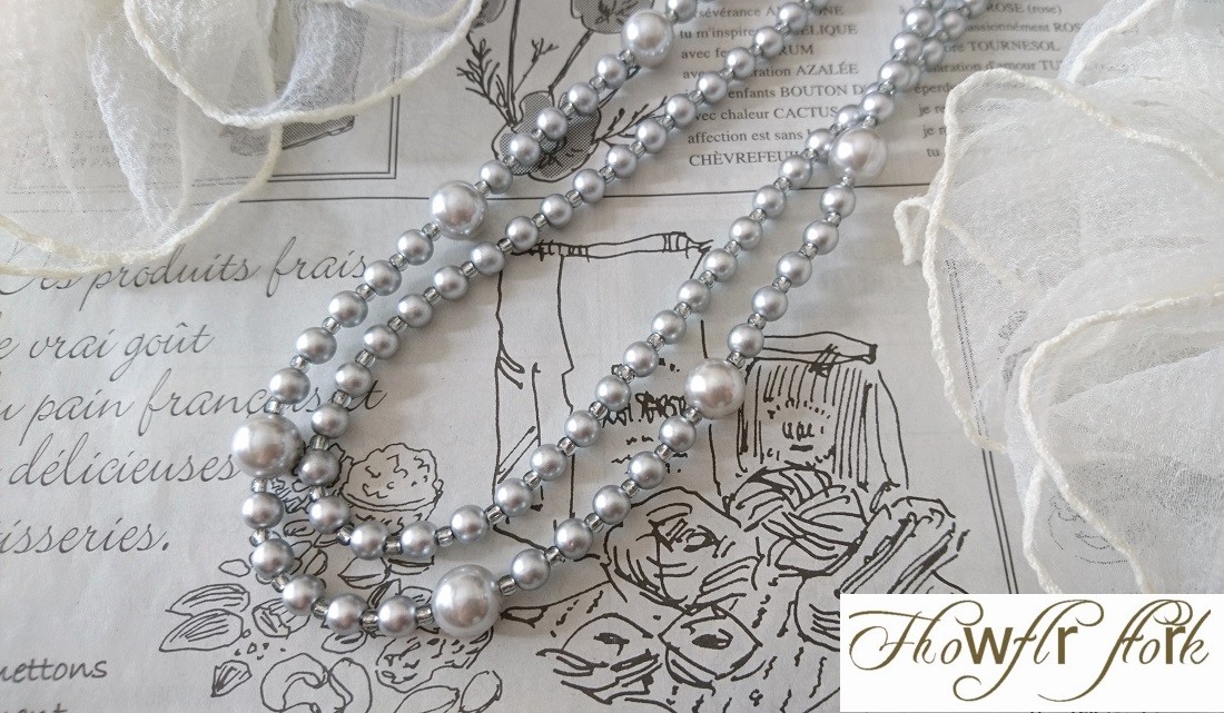【送料無料】◆flower storm◆長さ51~56cm アンティークシルバーの10mm玉樹脂パール&2種のビーズの2連ネックレス アジャスター付 ( アクセサリー TOHOビーズ ステンレス 日本製 ) [1368799674]