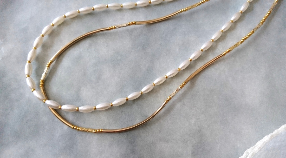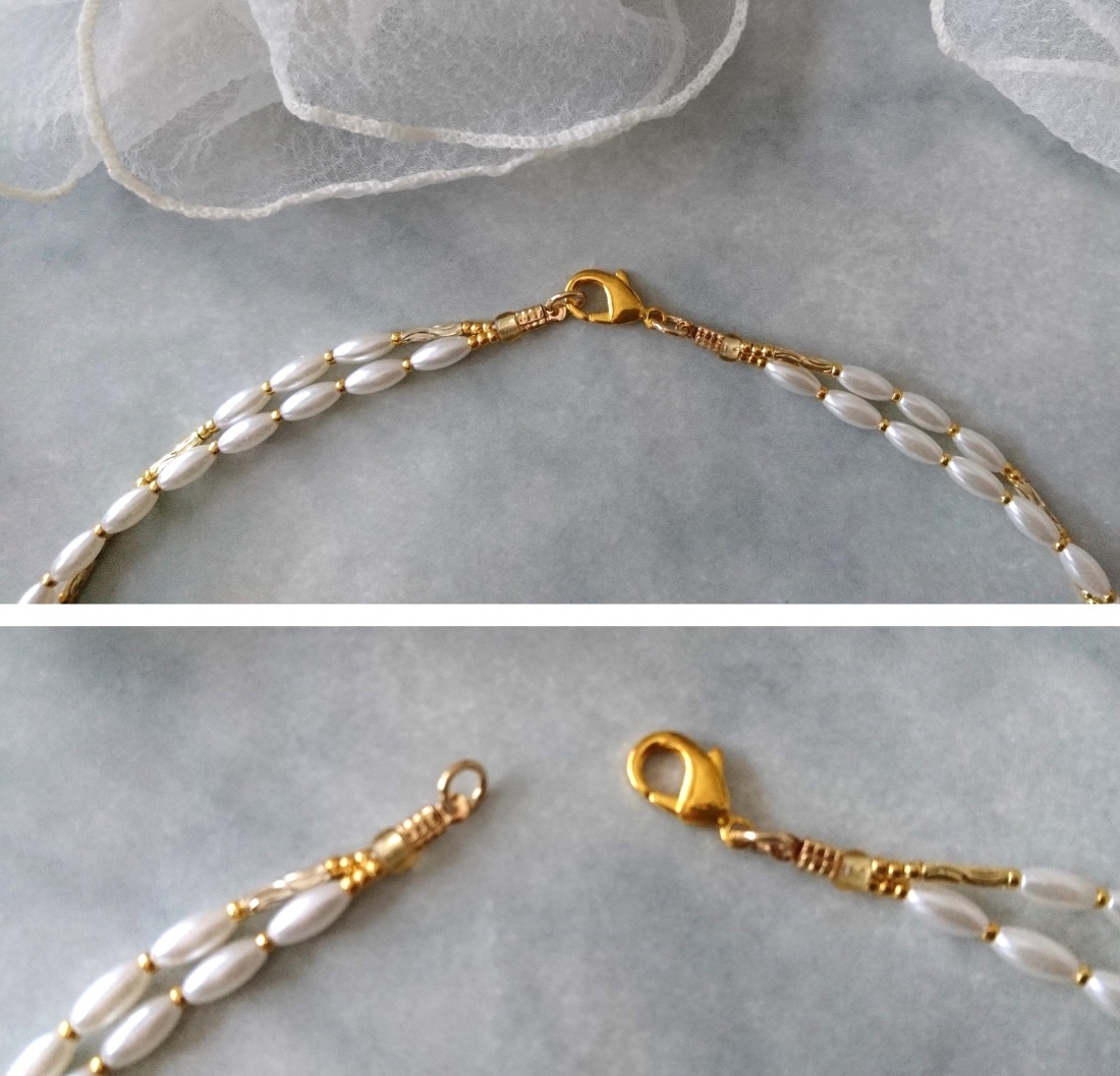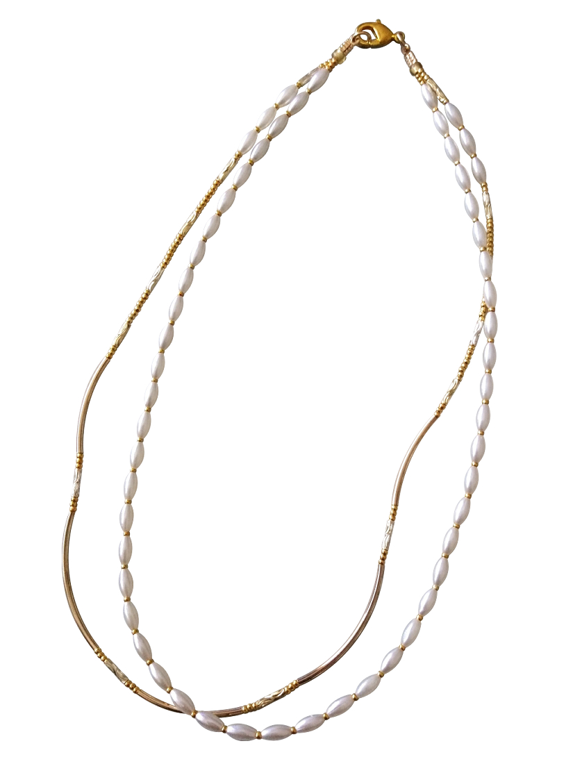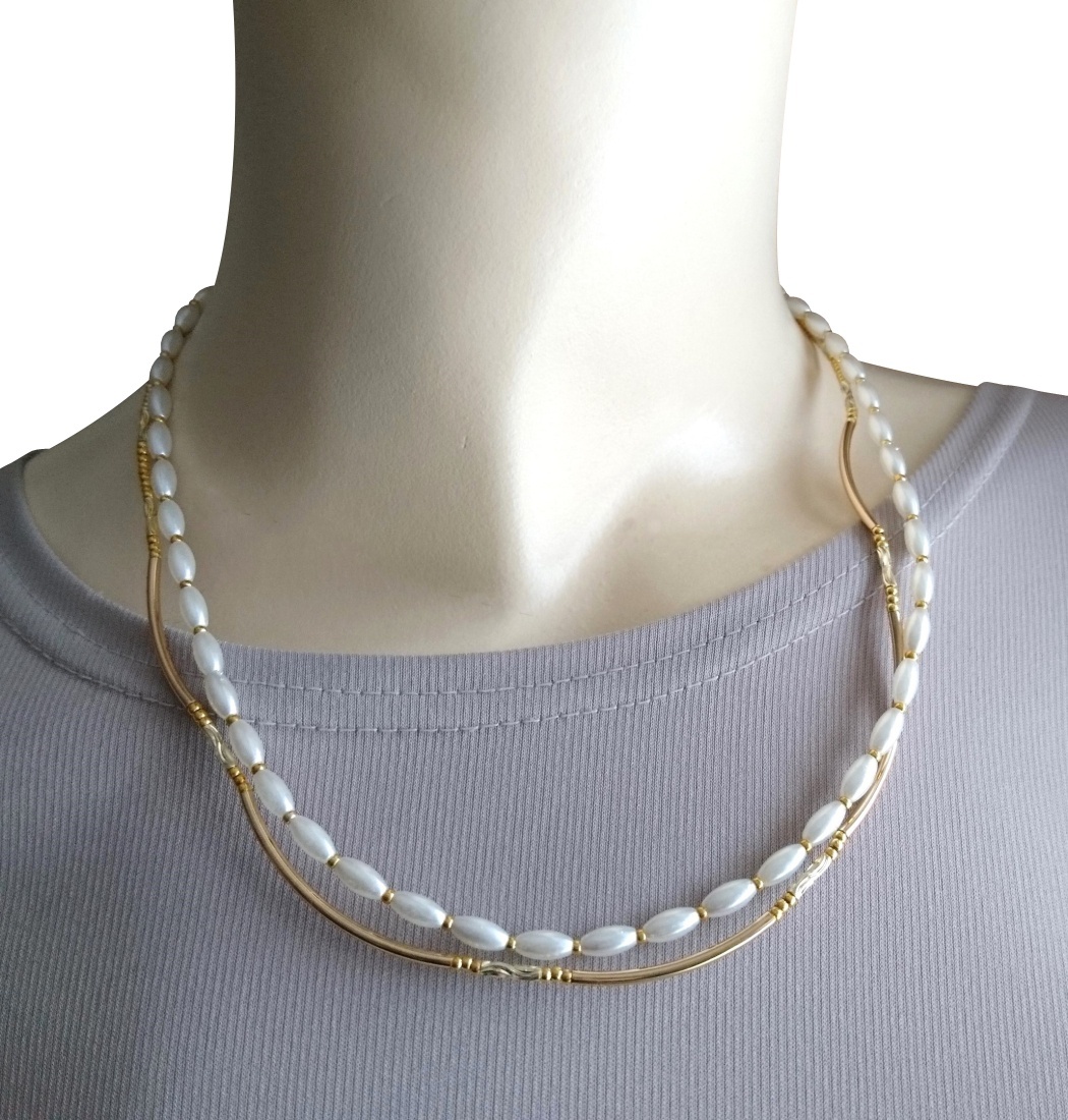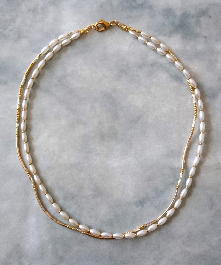 ホワイトパール×ゴールドメタルパーツの2連ネックレス☆☆