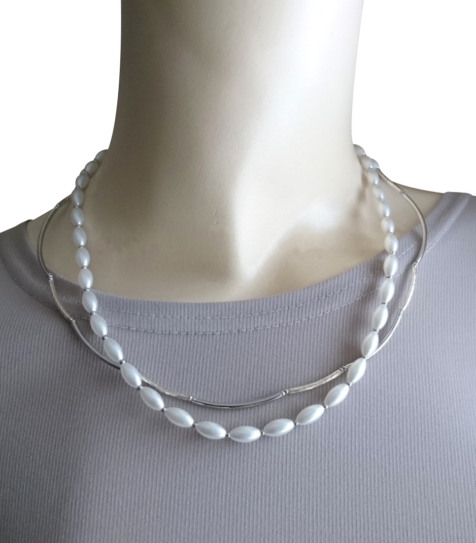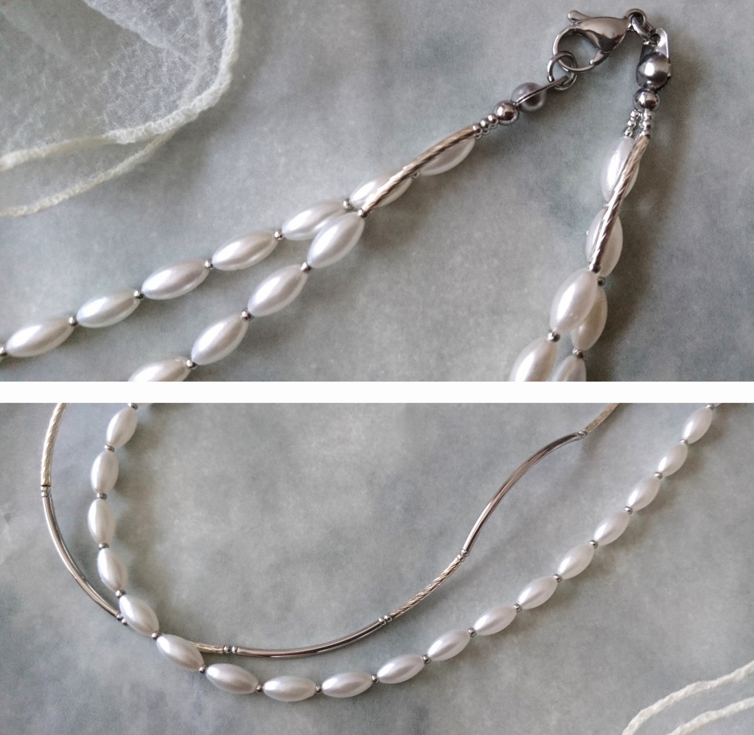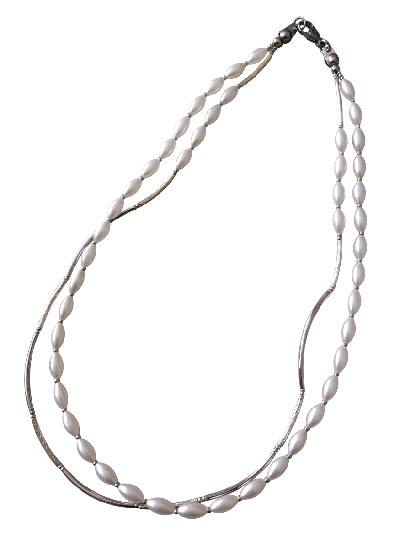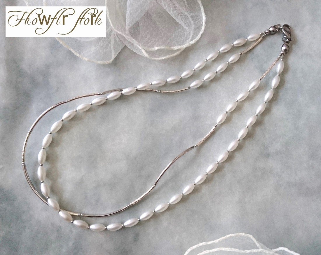 ホワイトパール×シルバーメタルパーツの2連ネックレス☆☆