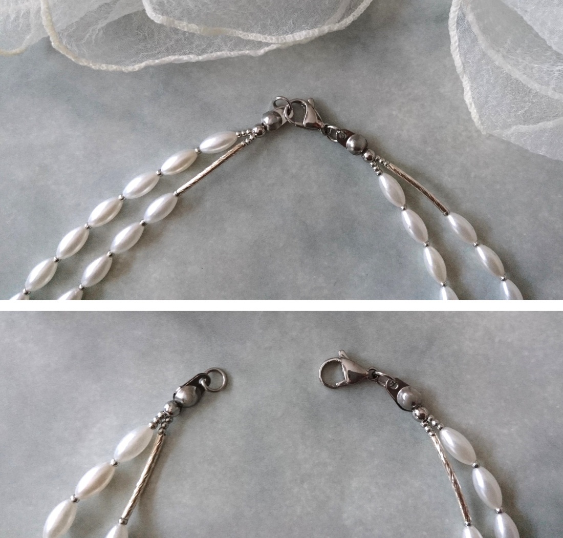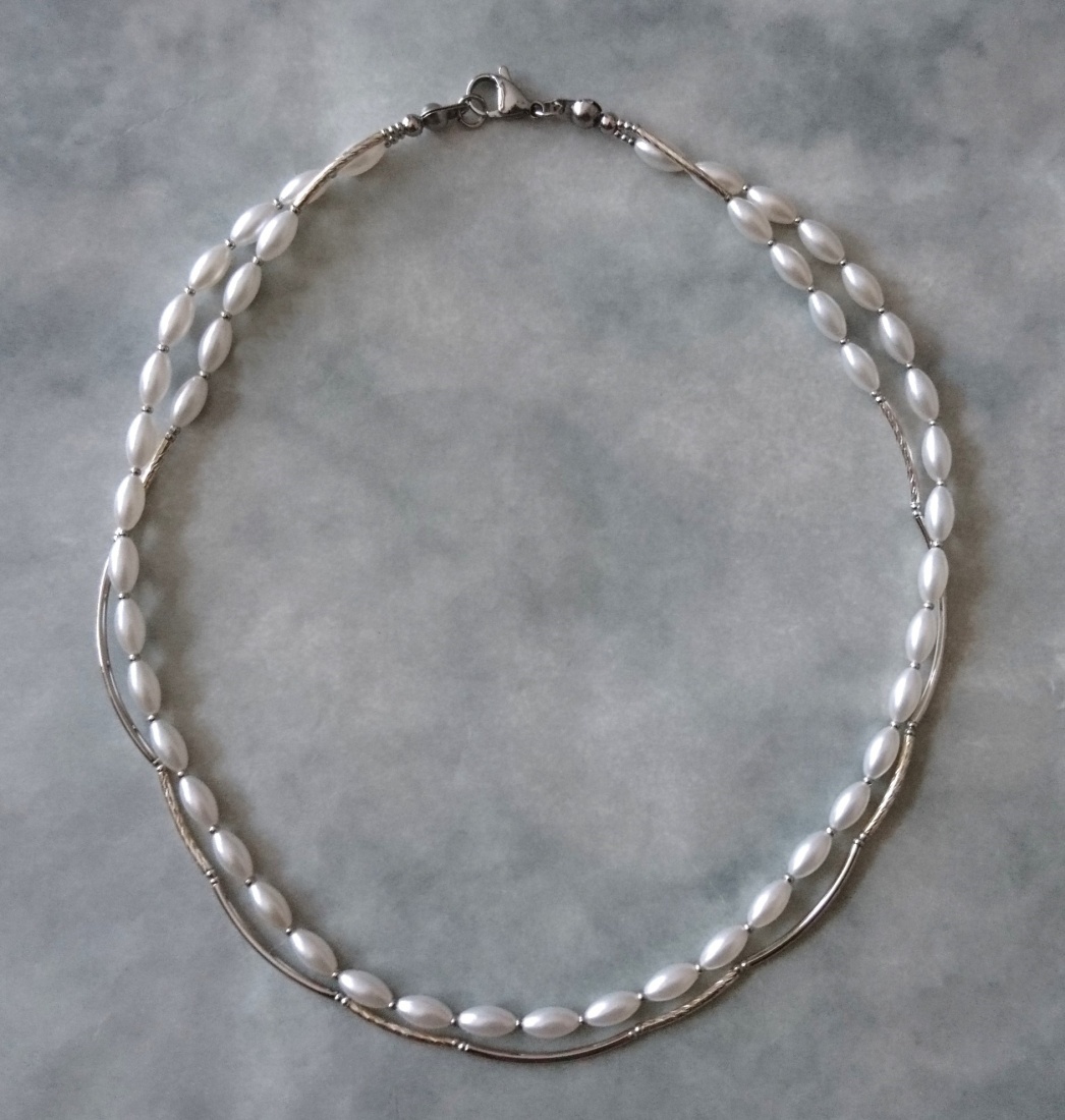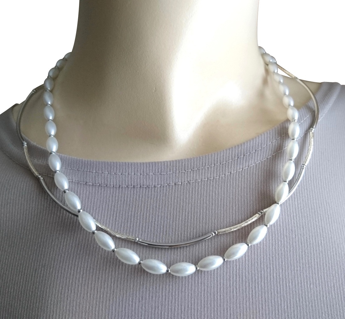 ホワイトパール×シルバーメタルパーツの2連ネックレス☆☆