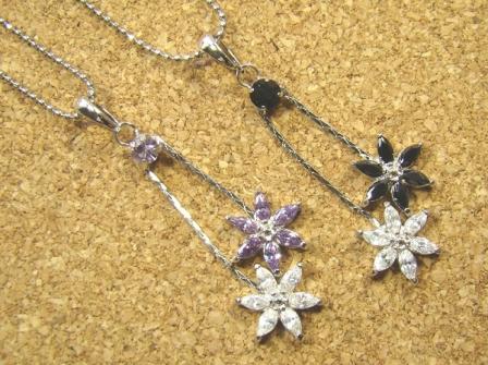【可憐に揺れる2輪の花♪】★キュービックジルコニア*ツインフラワーモチーフネックレス [560502A]