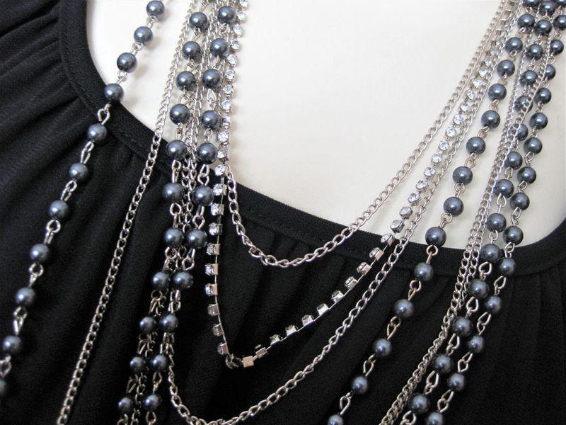 | 【3色展開】華やか8連パール&ラインストーンロングネックレス | |
