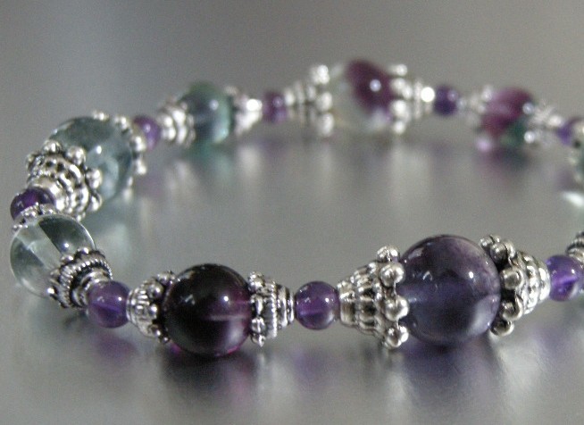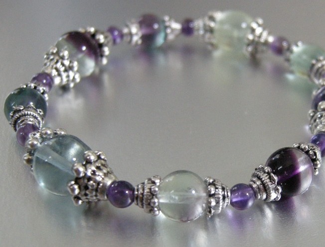 【パワーストーン】フローライト アメシスト 天然石ブレスレット★蛍石☆なんとも美しい石 CJ [155866456]