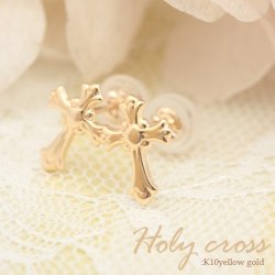 【日本製】【me on...】神聖な十字架が目をひく、K10アンティーククロスモチーフピアス [158236449]